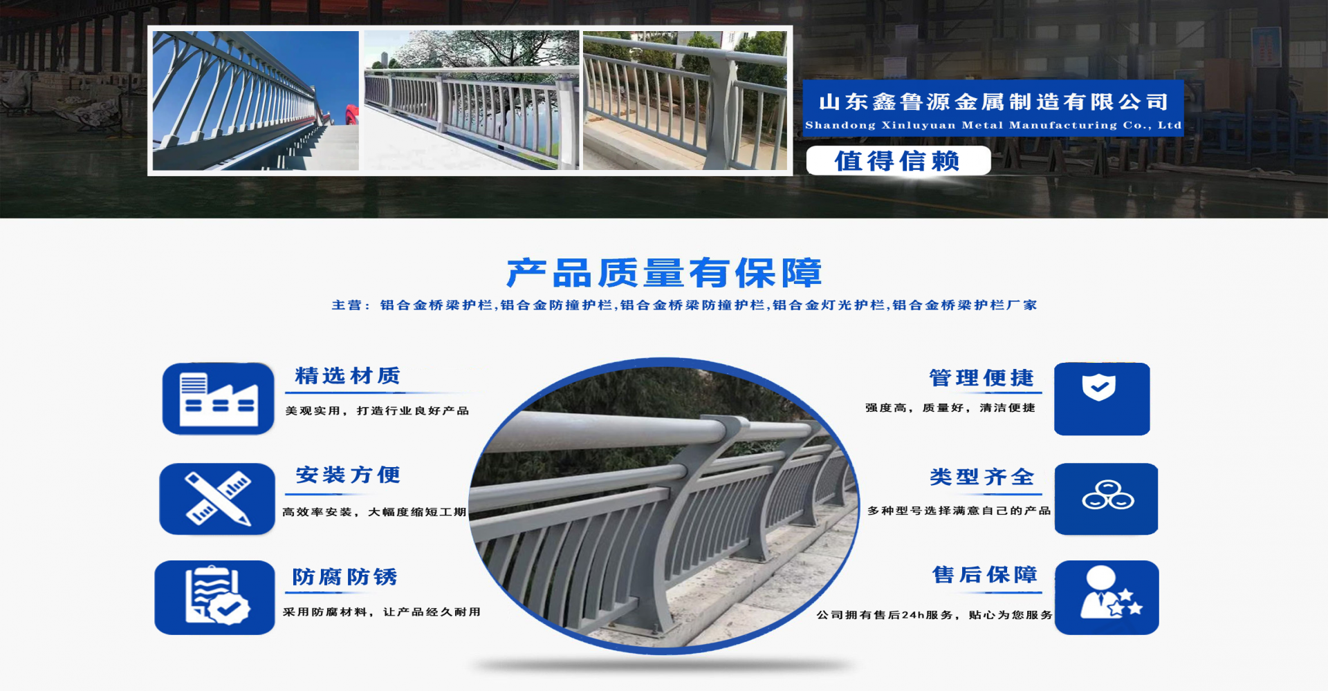 山東鑫魯源金屬制造有限公司主要經(jīng)營(yíng):鋁合金橋梁護(hù)欄,鋁合金防撞護(hù)欄,鋁合金橋梁防撞護(hù)欄,鋁合金燈光護(hù)欄,不鋁合金橋梁護(hù)欄廠家,環(huán)波梁橋梁護(hù)欄,環(huán)波梁防撞護(hù)欄。質(zhì)量可靠、經(jīng)濟(jì)實(shí)用的顯著特點(diǎn)。公司為客戶提供可靠售后保障,堅(jiān)持“以品質(zhì)立足、服務(wù)求發(fā)展”,愿與各界朋友精誠(chéng)合作、攜手發(fā)展! 服務(wù)優(yōu)勢(shì):真誠(chéng)的服務(wù)理念、完善的服務(wù)體系。公司專業(yè)力量充足;工程案例眾多、從業(yè)經(jīng)驗(yàn)豐富;公司以可靠質(zhì)量的產(chǎn)品,合理的價(jià)格,完善的售后服務(wù),能夠滿足市場(chǎng)各個(gè)企業(yè)的需求。 企業(yè)精神:執(zhí)著追求 持續(xù)創(chuàng)新執(zhí)著追求,就是堅(jiān)持不懈、堅(jiān)定從容,專注于自己的事業(yè),把能做的事情做好,不斷克服困難、把握機(jī)遇,贏得未來(lái)。 持續(xù)創(chuàng)新,就是生命不息、創(chuàng)新不止,通過(guò)持續(xù)實(shí)施技術(shù)創(chuàng)新、管理創(chuàng)新、市場(chǎng)創(chuàng)新,獲取持續(xù)的競(jìng)爭(zhēng)優(yōu)勢(shì)。...